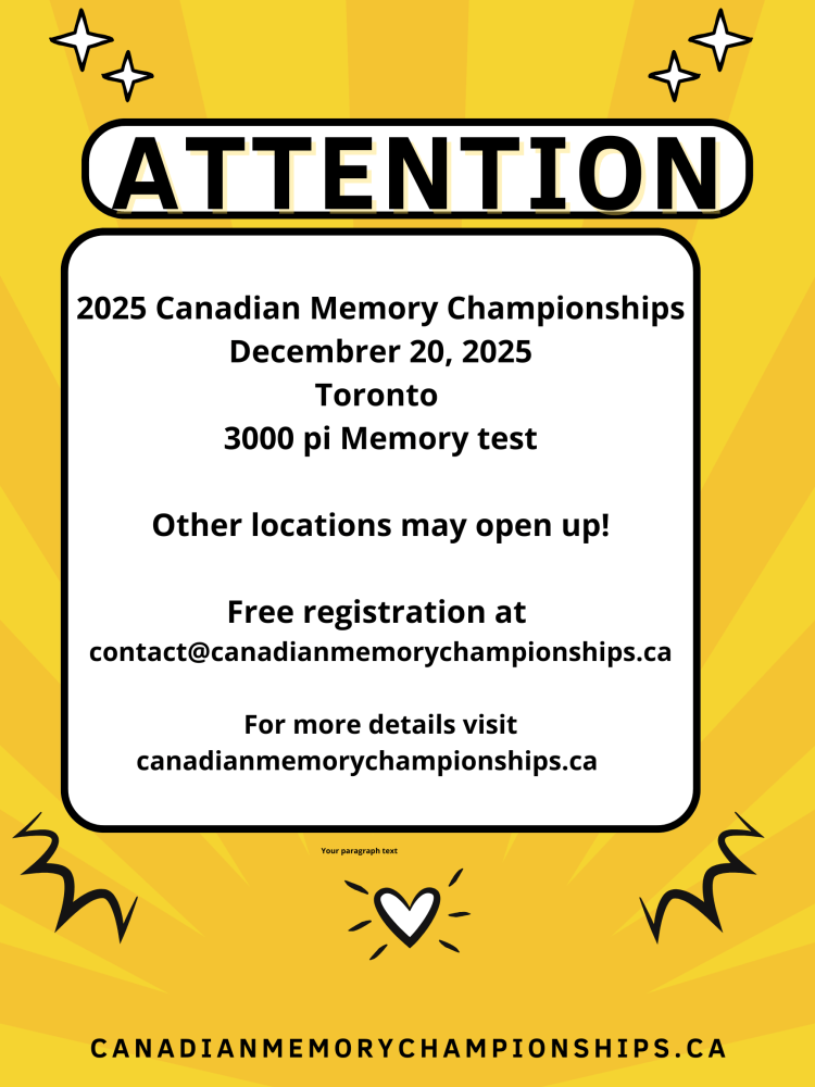To register for these sessions, please contact@canadianmemorychampionships.ca