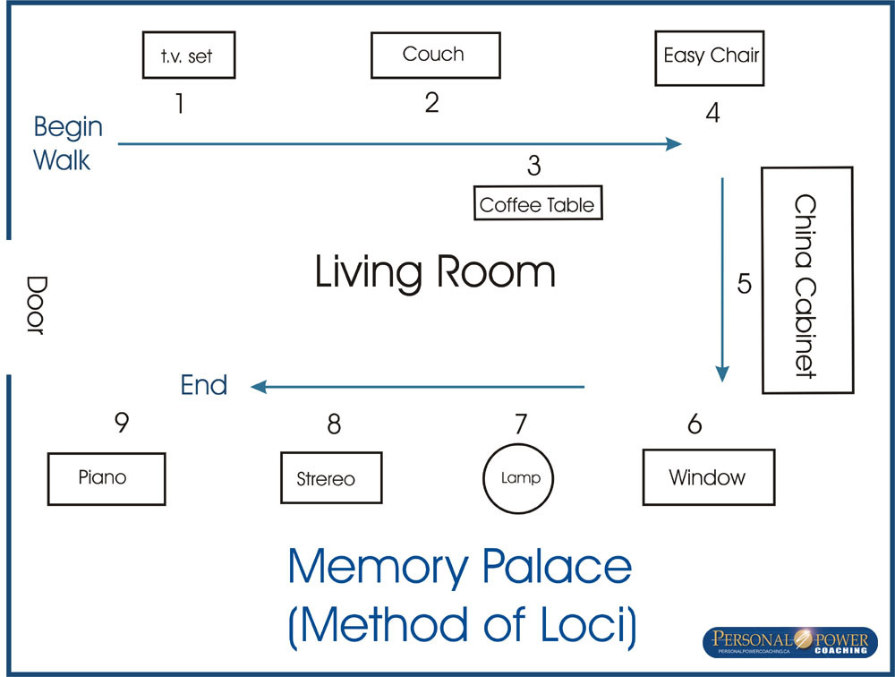 Now how many items from the grocery list can you recall? Simply retrace your steps through your Memory Palace and you’ll find recollection much easier and more precise. I bet you remember 9 out of 9, and notice how easy it was.